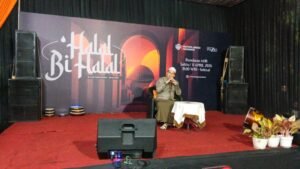 Tauziah Habib Moch Muchsin Al Hadad di momentum halal bihalal warga Perum Mutiara Jingga Residence. Foto (Kim)