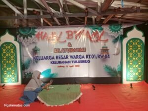 KOTA MALANG, NGALAMUTAS.COM – Kehangatan suasana Idulfitri masih terasa begitu kental dan menyentuh hati di Kelurahan Tulusrejo. Keluarga besar warga RT 01/RW 04 kembali mempererat tali persaudaraan melalui acara puncak Halal Bihalal dan Silaturahmi yang digelar dengan penuh khidmat pada Jumat, 11 April 2026.