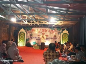 Dalam kesempatan tersebut, Ketua RT 01, Bapak Ruffandi Dwi P., menyampaikan sambutan yang hangat dan menyentuh hati. Ia membuka acara dengan rasa syukur dan menyapa seluruh tamu undangan, mulai dari Ketua RW, pengurus tetangga, Ibu Ketua PKK, para sesepuh, tokoh masyarakat, hingga Ustadz Ahmad Khoirudin, S.Pd. yang akan memberikan tausiyah.
