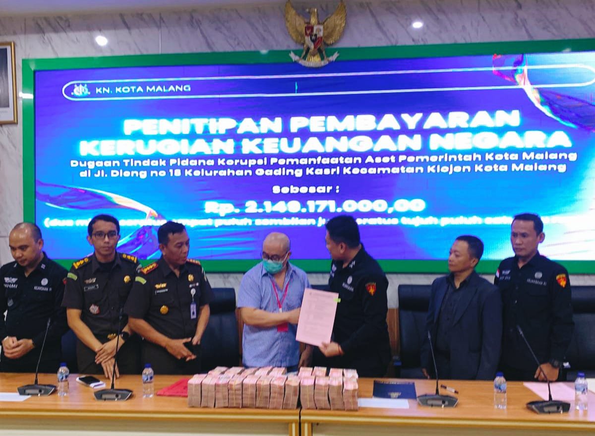 Kepala Kejari Kota Malang, Tri Joko, S.H., M.H., menjelaskan bahwa uang tersebut disetorkan oleh tersangka berinisial KS (65), warga Surabaya, sebagai bentuk tanggung jawab dan itikad baik untuk memulihkan kondisi keuangan negara.