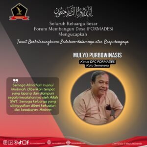 MALANG, NGALAMUTAS.COM – Seluruh Pengurus Dewan Pimpinan Pusat (DPP) Forum Membangun Desa (FORMADES) serta seluruh jajaran anggota FORMADES dari Sabang hingga Merauke dengan rasa dukacita yang mendalam mengumumkan kepergian Bapak Mulyo Purbowinasis, yang menjabat sebagai Ketua DPC FORMADES Kota Semarang.