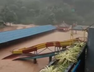 BANDUNG BARAT, NGALAMUTAS.COM – Media sosial diramaikan dengan unggahan terkait luapan aliran Sungai Cibitung – Ciputri di Kampung Curugan, Desa Mukapayung, Kecamatan Cililin, Kabupaten Bandung Barat (KBB). Permukaan sungai naik hingga menggenangi objek wisata Lembah Curugan Gunung Putri yang berdiri persis di tepi sungai, dengan bagian dalam objek wisata terendam air sungai berwarna cokelat yang meluber akibat hujan intensitas deras.