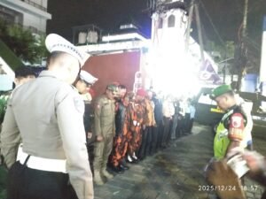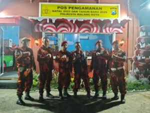 KOTA MALANG (JATIM), NGALAMUTAS.COM – Guna memastikan perayaan Natal dan Tahun Baru (Nataru) berjalan aman dan damai, Majelis Pimpinan Cabang (MPC) Pemuda Pancasila Kota Malang mengambil peran aktif dengan menerjunkan personel untuk menjaga sejumlah titik krusial di wilayah Kota Malang.