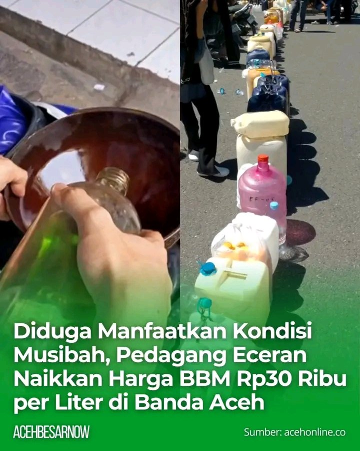 Warga Gampong Punge, Sayed, mengungkapkan bahwa harga yang berlaku saat ini sangat tidak wajar, apalagi di tengah kondisi Aceh yang sedang dilanda musibah. “Kemarin harganya Rp18 ribu per liter, hari ini naik jadi Rp30 ribu,” keluh Sayed, Selasa (2/12/2025).