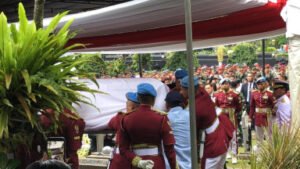 Presiden Prabowo Subianto bertindak sebagai inspektur upacara dan memimpin langsung prosesi penghormatan terakhir bagi almarhum yang wafat dalam usia 90 tahun.