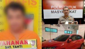 Barang bukti yang diamankan meliputi satu unit mobil Honda HR-V warna merah, satu kunci kontak, dan dokumen kendaraan.