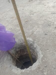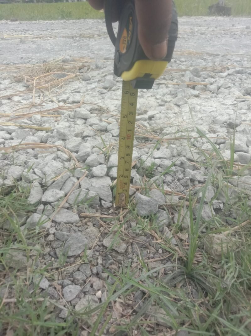 Berdasarkan pengamatan di lapangan, terlihat sejumlah titik yang menunjukkan ketebalan struktur lantai kerja hanya berkisar antara 1 cm hingga 2 cm. Selain itu, kedalaman lubang strauss juga diduga hanya mencapai sekitar 60 cm, jauh di bawah standar yang seharusnya diterapkan pada konstruksi jalan yang kokoh.