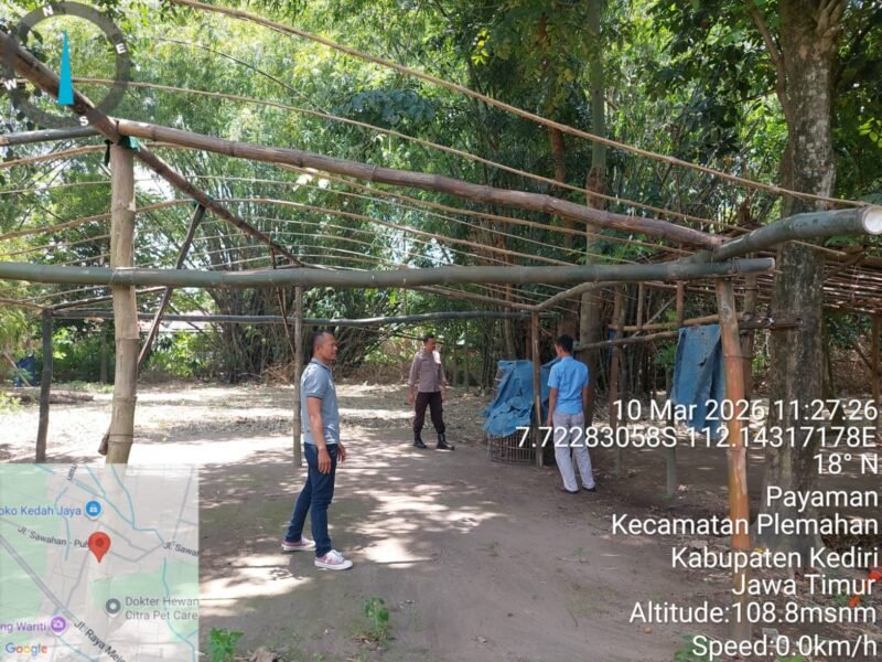 KEDIRI, NGALAMUTAS.COM – Polisi menertibkan sebuah lokasi yang diduga kerap digunakan sebagai arena sabung ayam di Desa Payaman, Kecamatan Plemahan, Kabupaten Kediri, Selasa (10/3/2026).