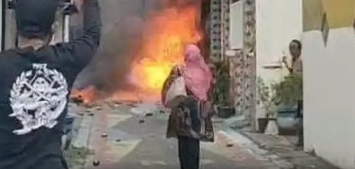 SURABAYA, NGALAMUTAS.COM – Sebuah rumah yang dijadikan gudang di Jalan Petemon 2A, Surabaya, ludes terbakar pada Sabtu (20/12) sekitar pukul 12.37 WIB. Kejadian ini sempat memanas ketika seorang perempuan yang diduga sebagai pemilik gudang hendak masuk ke dalam kobaran api di tengah suara ledakan bertubi-tubi.