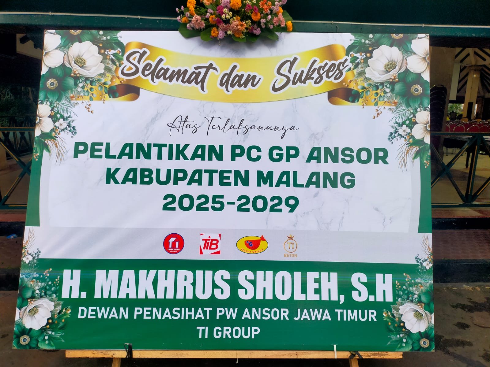 Dalam kesempatan tersebut, H. Makhrus Sholeh tidak hanya mengirimkan papan ucapan selamat, tetapi juga memastikan diri hadir langsung untuk memberikan dukungan moral bagi para kader muda Nahdlatul Ulama (NU) di Kabupaten Malang.