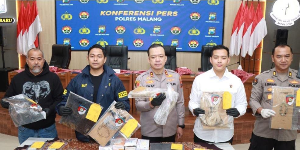 Konferensi pers dipimpin Kapolres Malang Muhammad Taat Resdi dan dihadiri Kasatresmob Bareskrim Polri Kombes Pol Teuku Arsya Kadafi serta Kasubdit Jatanras Ditreskrimum Polda Jatim Arbaridi Jumhur.