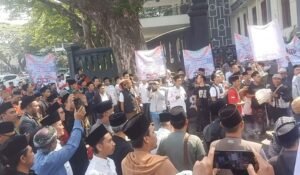 KOTA MALANG (JATIM), NGALAMUTAS.COM – Ratusan santri dari berbagai pesantren di Malang Raya menggelar aksi damai di depan Balai Kota Malang pada Rabu (15/10/2025) pagi.